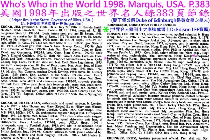 科學家,名醫李迪成教授在世界名人錄之一(美國版)