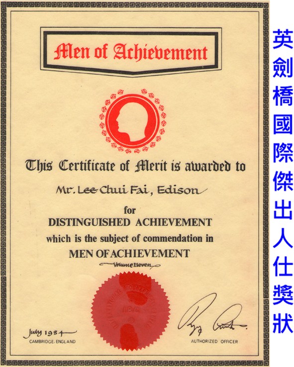 Inventor Edison LEE has been elected the “Man of Achievement in Cambridge, UK.”